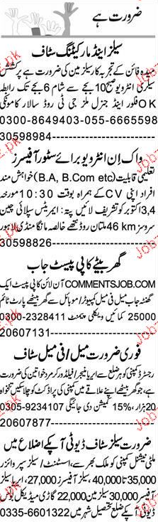 Sales and Marketing Staff are required in Lahore. Send your hand Written Application along with Educational certificates, Domicile, Copy of CNIC and Recent Photographs