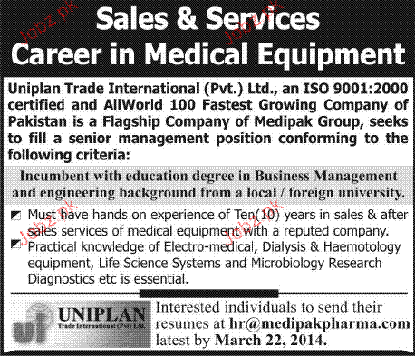 Apply as per details in job advertisement. Login to view further details of how to apply via https://www.jobz.pk online.