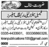 Kiran Publications invites applications for job positions advertised in daily Khabrain dated 3 August 2023 for following vacancies in Lahore, lahore Punjab Pakistan.