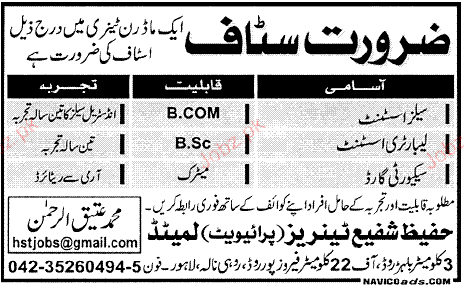 Apply as per details in job advertisement. Login to view further details of how to apply via https://www.jobz.pk online.