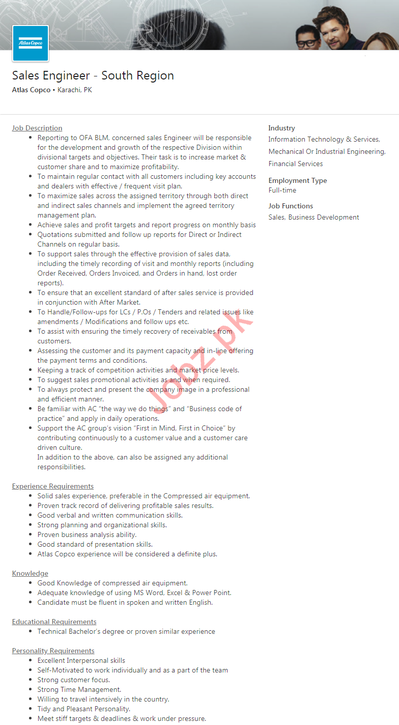 Latest Atlas Copco Pakistan Pvt Ltd Sales Posts Karachi 2025