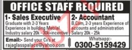 Sales Executive & Accountant Jobs 2019 In Rawalpindi
