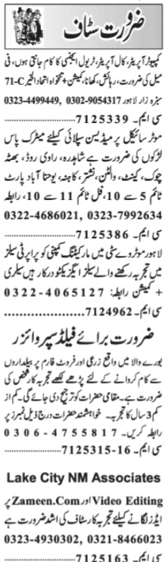 Sales Executive & Computer Operator Jobs 2022 in Lahore