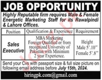 Private Firm invites applications for job positions advertised in daily The News dated 30 June 2024 for following vacancies in Lahore, lahore Punjab Pakistan.
