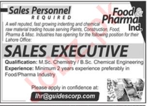 Latest Food and Pharma Industry Sales Posts Lahore 2025