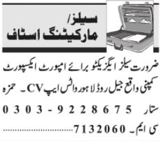 Import Export Company invites applications for job positions advertised in daily Jang dated 28 April 2023 for following vacancies in Lahore, lahore Punjab Pakistan.