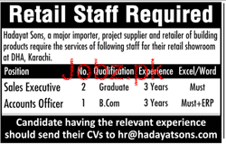 Sales Executives and Account Officers Job in Hadayat Sons
