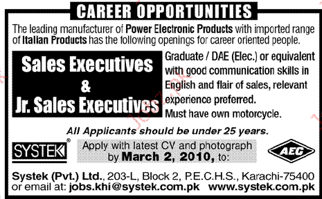 Sales Executives and Junior Sales Executives Required