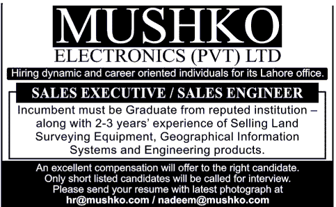 Sales Executives are required in Lahore.