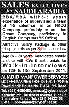 Sales Executives are required in Saudi Arabia