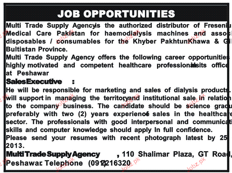 Apply as per details in job advertisement. Login to view further details of how to apply via https://www.jobz.pk online.