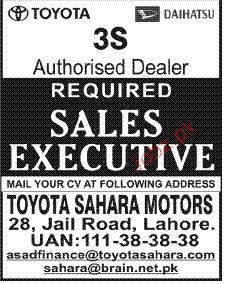 Sales Executives are required in Toyota Sahara Motors in Lahore