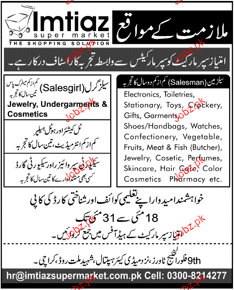 Sales Girls, Cashiers and Helpers Job Opportunity
