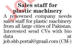 Sales Jobs 2018 For Plastic Machinery In Lahore