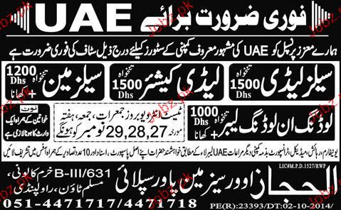 Sales Lady, Lady Cashiers, Salesman Job Opportunity