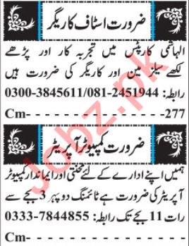 Sales Man & Computer Opertor Jobs 2019 In Quetta