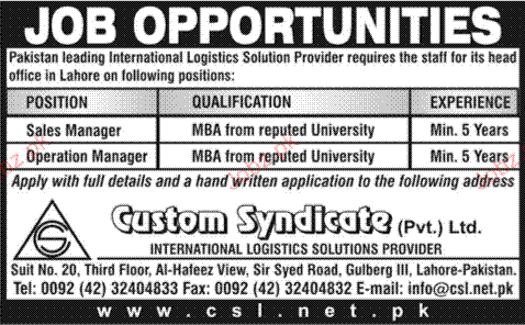 Latest Sales Posts Lahore 2025