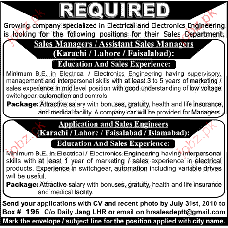 Sales Manager, Assistant Sales Manager Job Opportunity