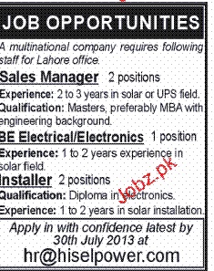 Sales Manager, BE Electrical and Installers Job Opportunity