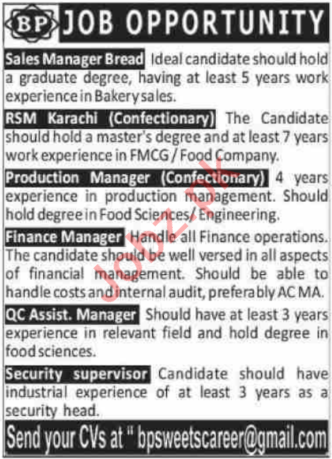 Sales Manager Bread & RSM Jobs 2021 In BP Industries
