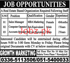 Latest Growth Marketing Sales Posts Rawalpindi 2025