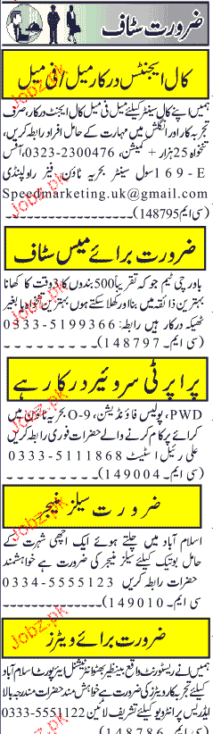Sales Manager, Cook, Surveyors, Waiters Job Opportunity