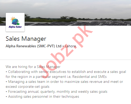 Sales Manager Job 2020 In Lahore