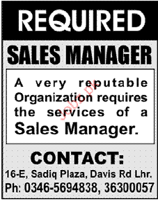 Latest Sales Posts Lahore 2025