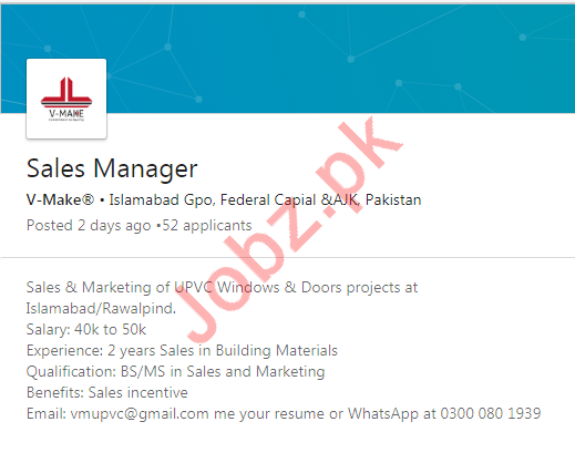 Sales Manager Jobs 2019 In Islamabad & Rawalpindi