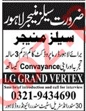 Sales Manager Jobs 2020 In LG Grand Vertex Lahore
