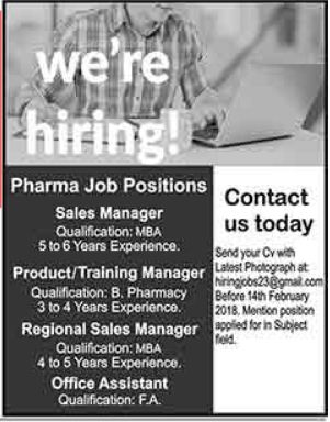 Latest Pharmaceutical Company Management Posts Karachi 2025