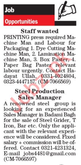 Apply as per details in job advertisement. Login to view further details of how to apply via https://www.jobz.pk online.