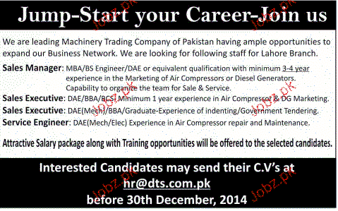 Sales Manager, Sales Executives And Service Engineer Wanted