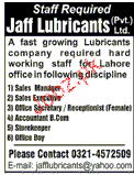 Sales Manager, Sales Executives and Office Boys are required in Lahore.