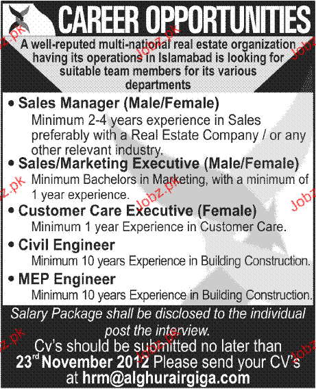 Apply as per details in job advertisement. Login to view further details of how to apply via https://www.jobz.pk online.