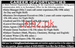 Apply as per details in job advertisement. Login to view further details of how to apply via https://www.jobz.pk online.