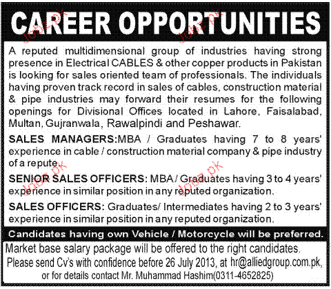 Apply as per details in job advertisement. Login to view further details of how to apply via https://www.jobz.pk online.