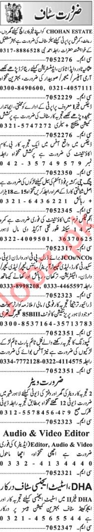 Customer Relationship Officer CRO, Assistant Manager, Branch Manager, Receptionist, HR Officer, Supervisor, Assistant Supervisor, Account Manager, Office Assistant, Male/ Female Executives, Salesman, Female Marketing Staff, Sales Staff, Computer Operator, Sales Manager and Sales Officer required in well known companies.