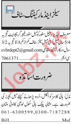 Sales & Marketing Staff Jobs 2019 in Multan