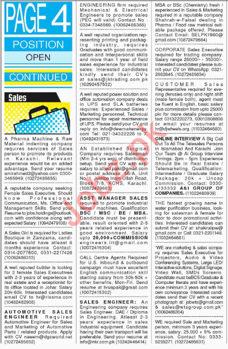 Customer Relationship Officer CRO, Assistant Manager, Branch Manager, Receptionist, HR Officer, Supervisor, Assistant Supervisor, Account Manager, Office Assistant, Receptionist, Clerk, Male/ Female Executives, Salesman, Female Marketing Staff, Sales Staff, Computer Operator, Sales Manager and Sales Officer required in well reputed companies.