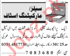 Sales & Marketing Staff Jobs Open In Lahore 2020