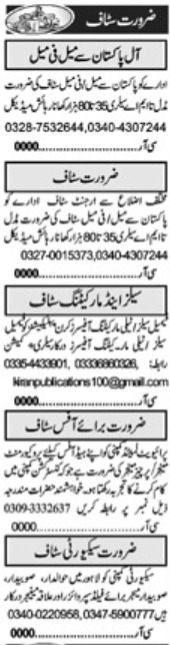 Private invites applications for job positions advertised in daily Khabrain dated 1 November 2023 for following vacancies in Lahore, lahore Punjab Pakistan.