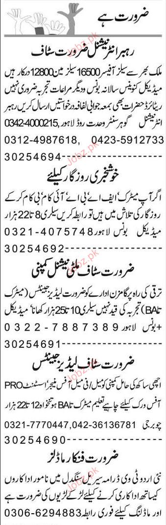 Sales Officer, Office Manager, Office Assistant and Salesman are Required in Lahore