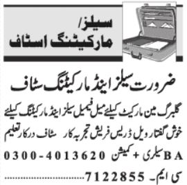Vacant posts including marketing manager, sales staff, sales officer and marketing staff are announced in Marketing Company Lahore, lahore Punjab Pakistan as per 16 September 2022 advertisement in daily Jang Newspaper. Educational qualifications required Matric, Intermediate, Bachelor and Middle etc.