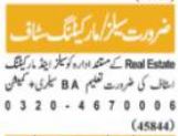 Vacant posts including sales officer and marketing officer are announced in Real Estate Company Lahore, lahore Punjab Pakistan as per 14 April 2022 advertisement in daily Nawaiwaqt Newspaper. Persons with Bachelor and Intermediate etc. education can apply.