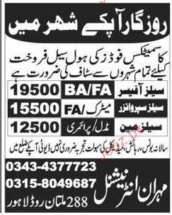 Latest Private Company Sales Posts Lahore 2025