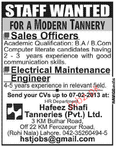 Sales Officers and Electrical Maintenance Engineers Wanted