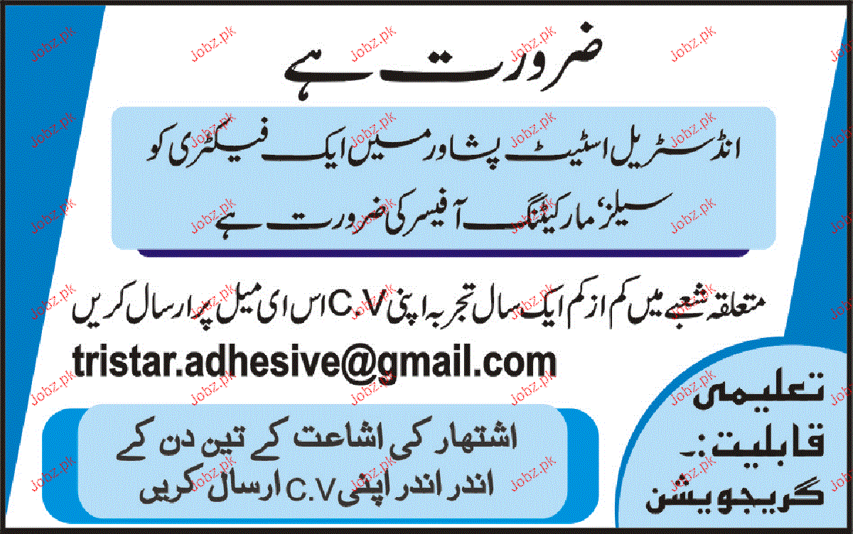 Apply as per details in job advertisement. Login to view further details of how to apply via https://www.jobz.pk online.