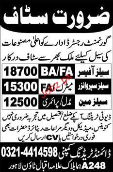 Latest Private Company Sales Posts Lahore 2025
