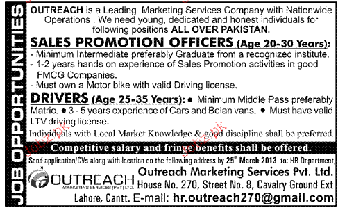 Sales Promotion Officers And Drivers Job Opportunity